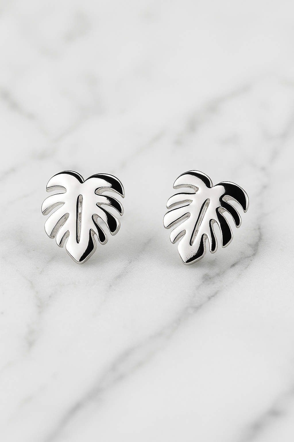 Aros medianos de acero bañado en plata con diseño de hojas filodendro. Inspiración botánica, perfecta para looks delicados.