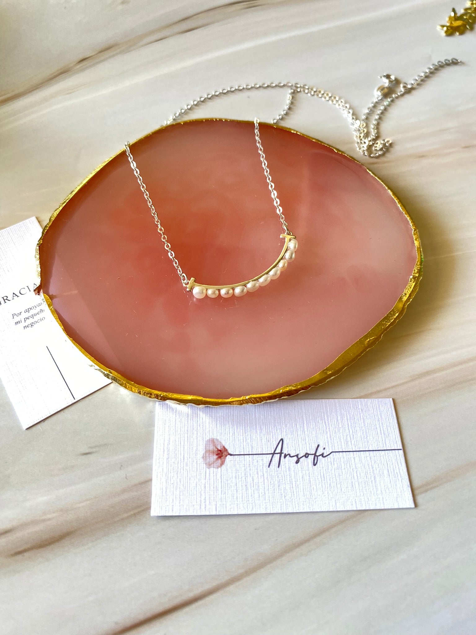 Cadena de plata 925 con una perla central suspendida. Elegancia clásica con un diseño limpio que resalta la belleza de lo natural. Largo: 45 cm.