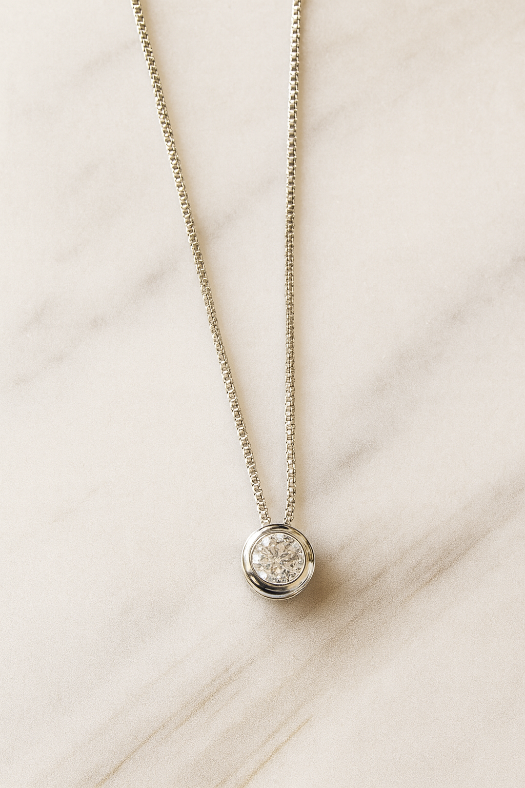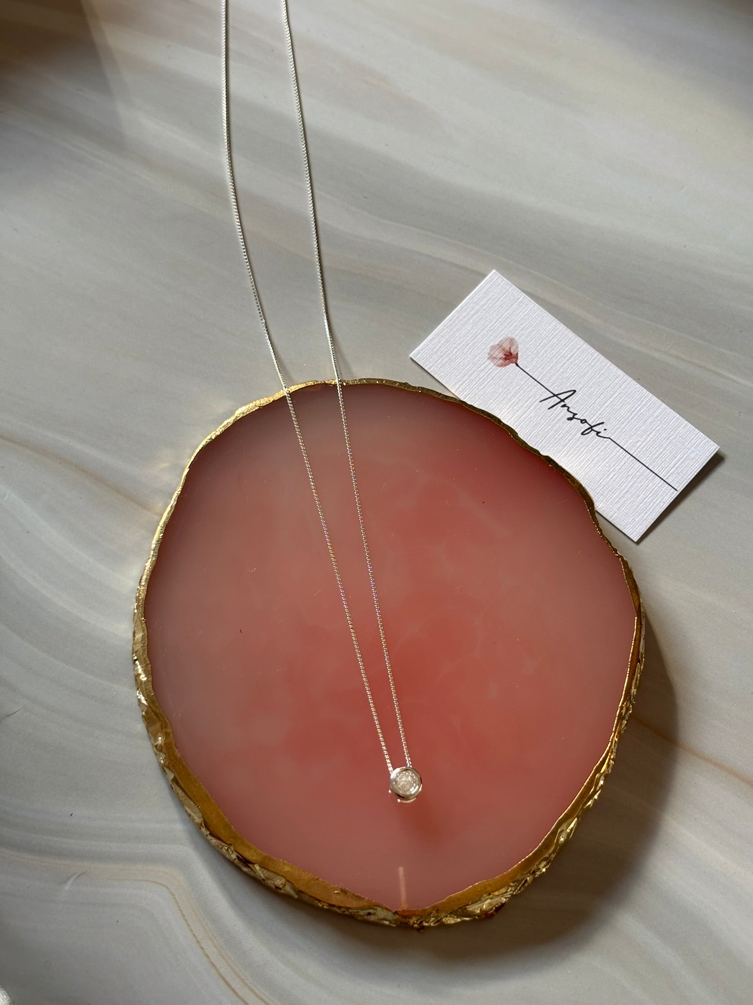 Cadena de plata 925 con un punto de luz brillante. Minimalismo con luz propia. Largo: 45 cm.